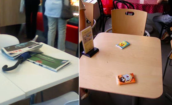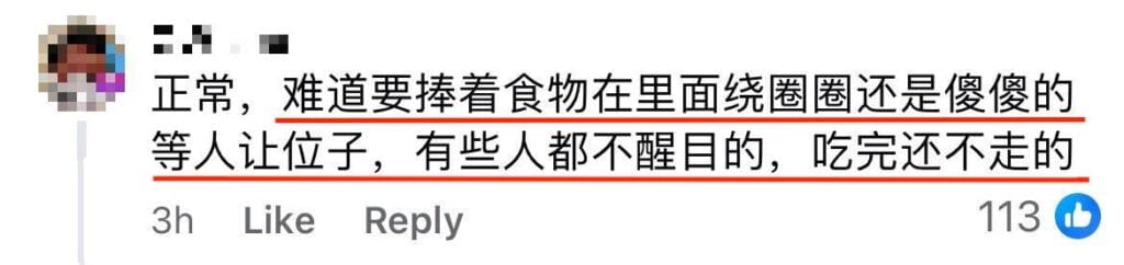 「用员工证、雨伞、水瓶、纸巾等来占位子,自己却去排队买东西,结果真正已经拿了食物的人,还得在美食广场一直找不到座位。」