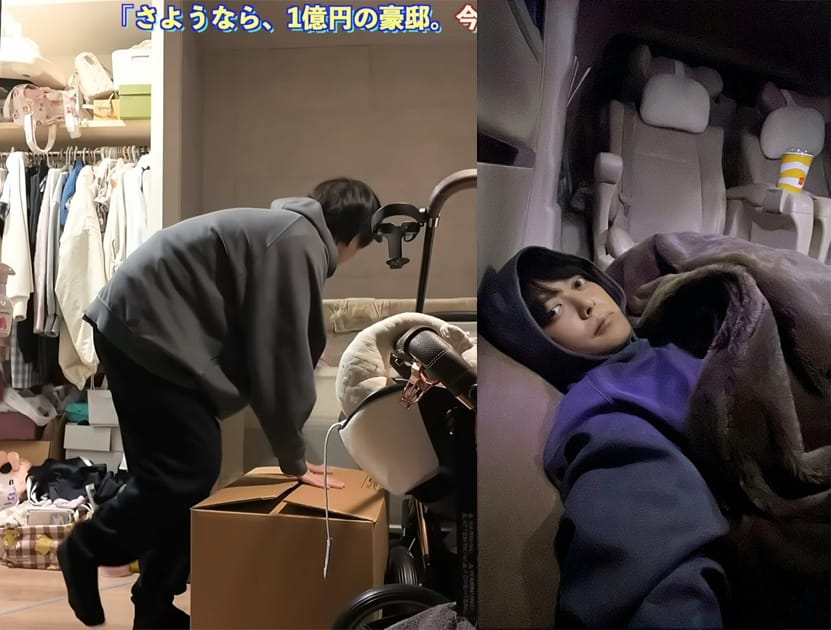 随着两名妻子离去,他因全部财产只剩 18 万日圆(约 4,594 令吉),被迫搬离住所。因无家可归,在零下 7 度的北海道严冬下,与二房在 7 人车内过夜。
