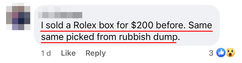▼我以前也卖过一个劳力士的盒子,200 新币(约 RM600)!也是在垃圾堆捡到的!