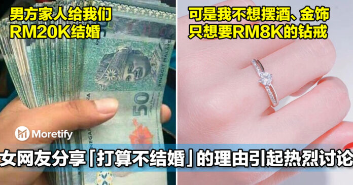 男友其实对我很好,但是他的家人让我觉得我很 cheap。别人给聘金都 RM10k 了,还没算戒指婚纱照摆酒等等。