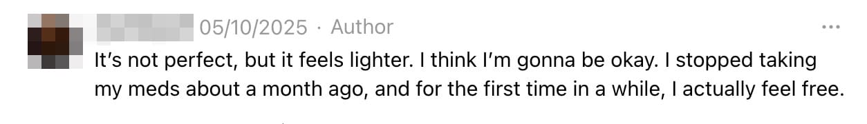 虽然新生活并不完美,但却让他轻松多了。他透露,自己目前已经停药一个月了,久违地感受到真正的自由。