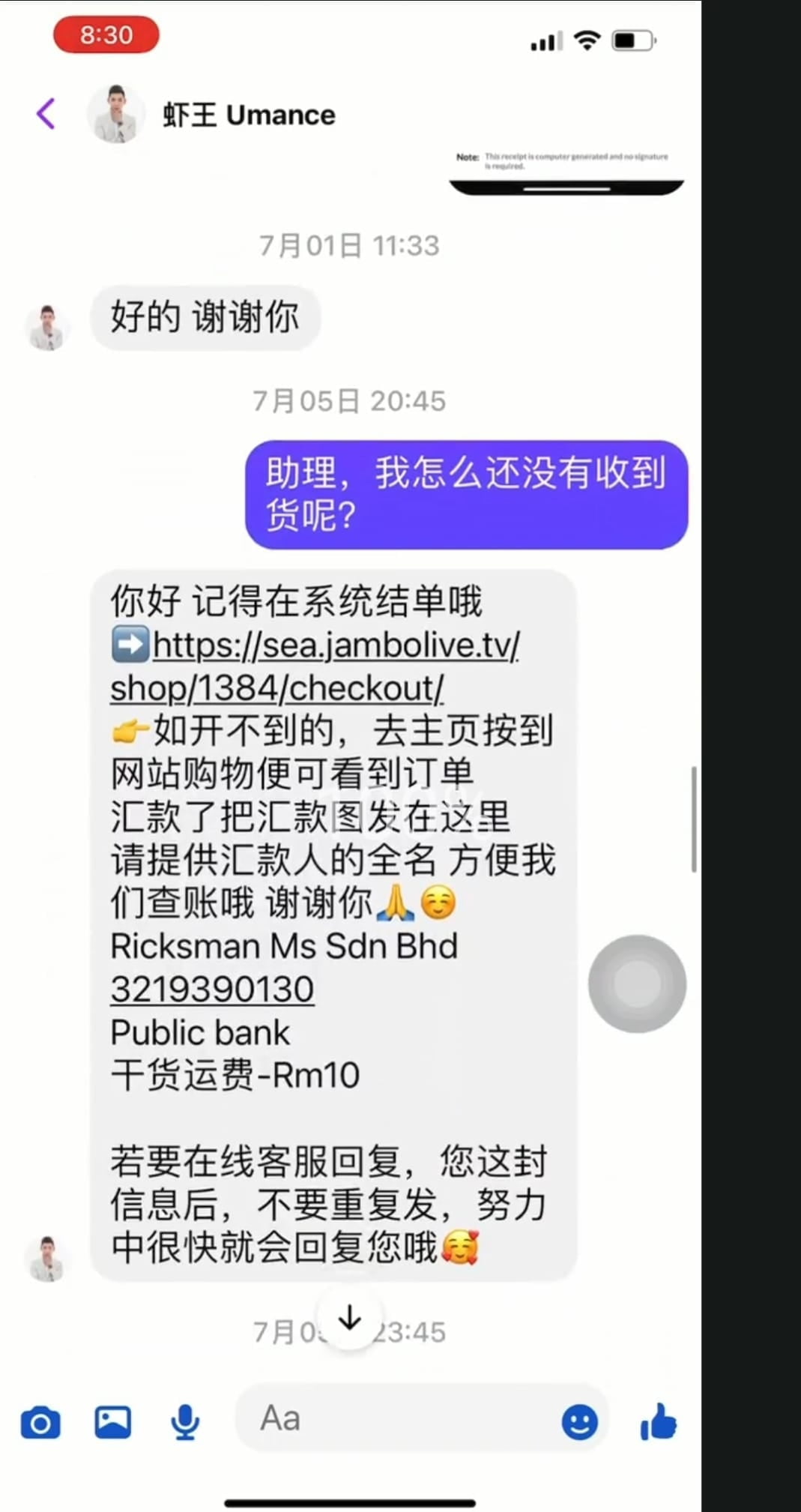 据了解,虾王的顾客只是要他退 32 块钱而已,不懂为什么那么难?而且不是顾客爽单要退款的,而是那边没货了,没货退款是很正常的!该名顾客不明白为什么要拖那么久,而且已经超过 14 天了!
