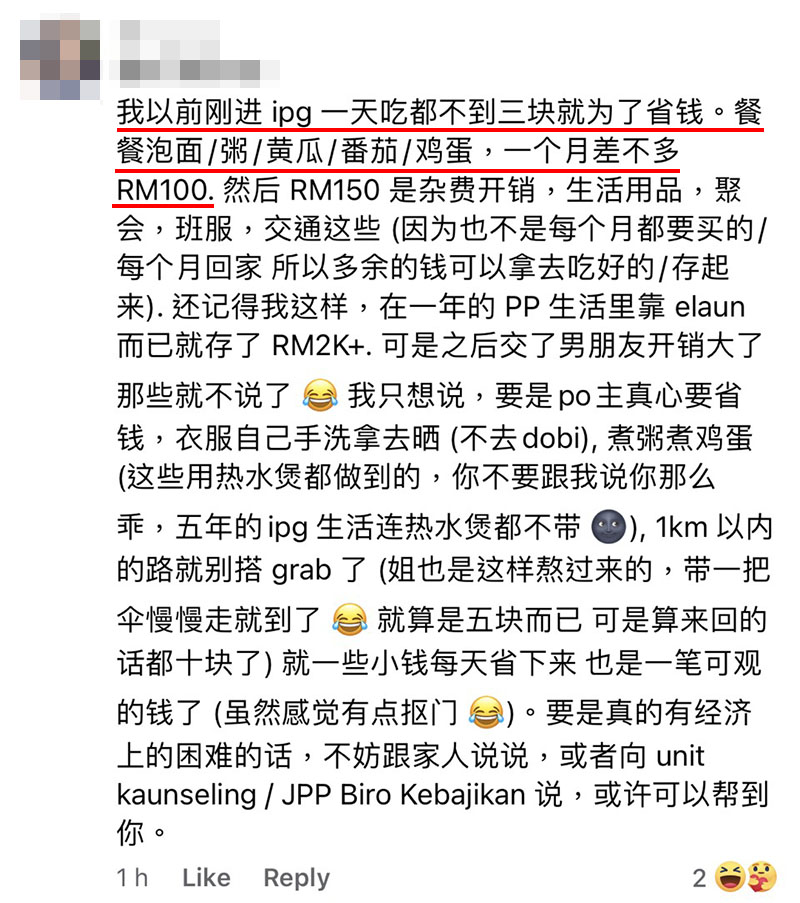 ▼楼主是 IPG (师范学院)的学生,他很好奇其他的大学生一天会花多少钱来吃饭?