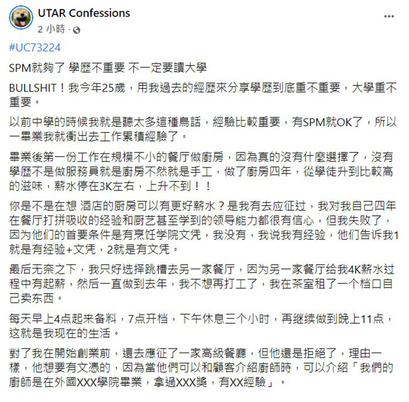 大家是不是都听人说过「有 SPM 就够了,学历不重要,不一定要读大学」这种话呢?一名 25 岁的网友就用自己的亲身经历,跟大家分享学历是不是真的那么不重要!