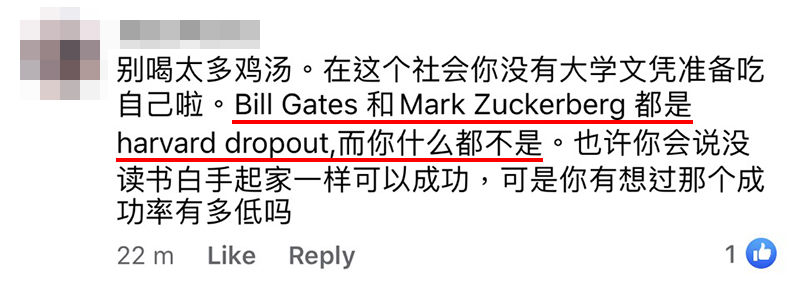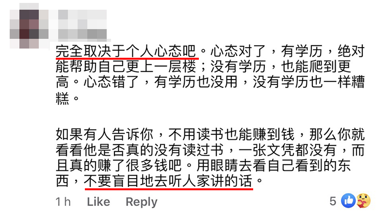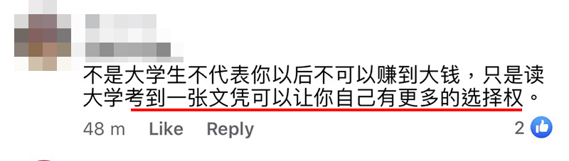 ▼不过也有网友认为,不要直接认定没有读大学就是没有出息!