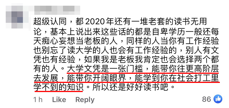 ▼楼主表示,自己中学时期就是听了太多这样的鸟话,觉得经验比文凭重要,有 SPM 就够了,所以一毕业马上就冲去工作累积经验!