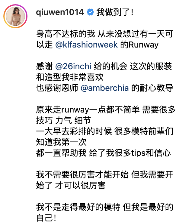 身高不达标的我 从来没想过有一天可以走 @klfashionweek 的Runway