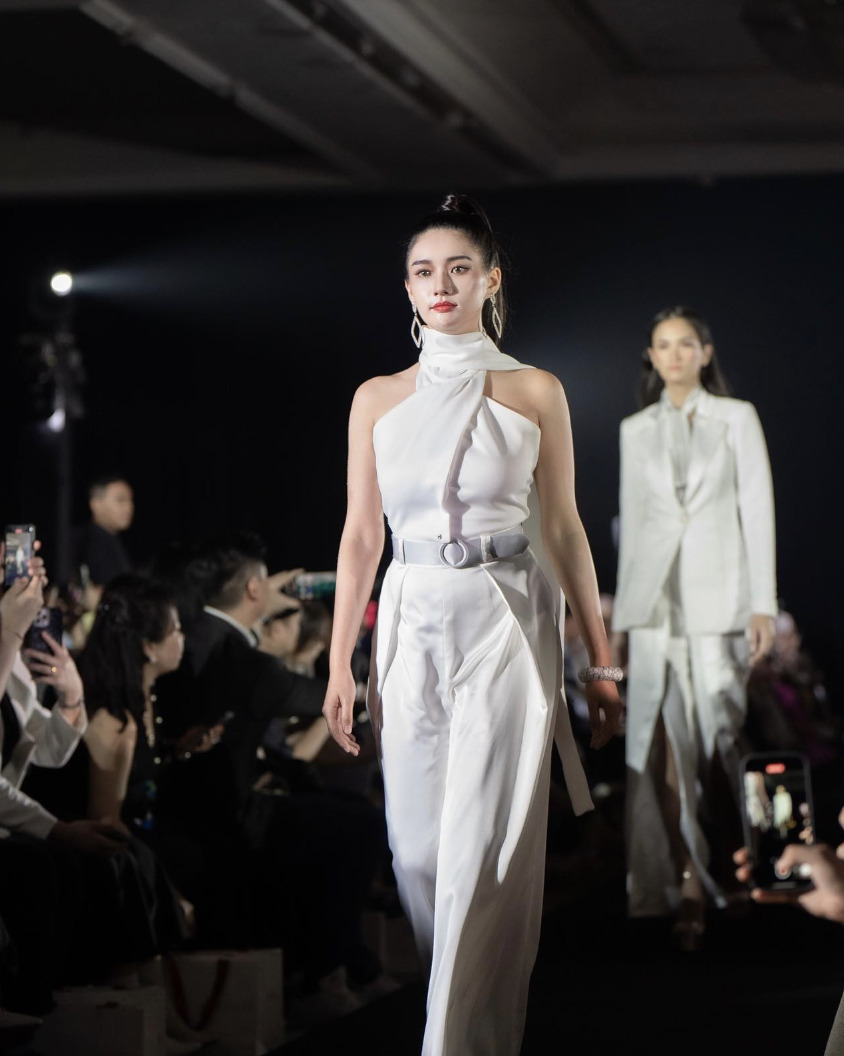 ▼秋雯晒出自己第一次参与走秀的照片。一身白衣加上姿态和表情,看起来很专业哦!