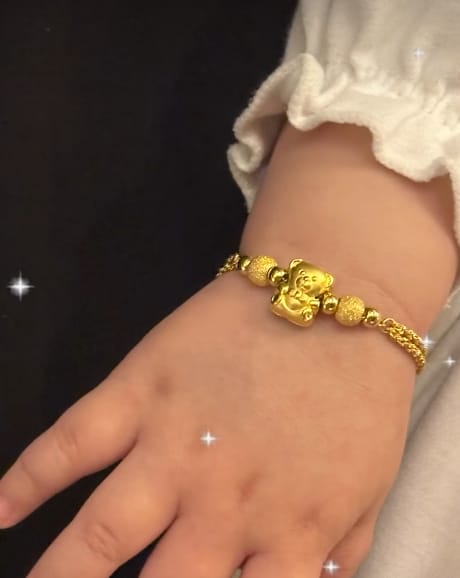 ▼于是他决定趁着今年好年,就选了一条 teddy bear 的金手链送给他的干女儿!