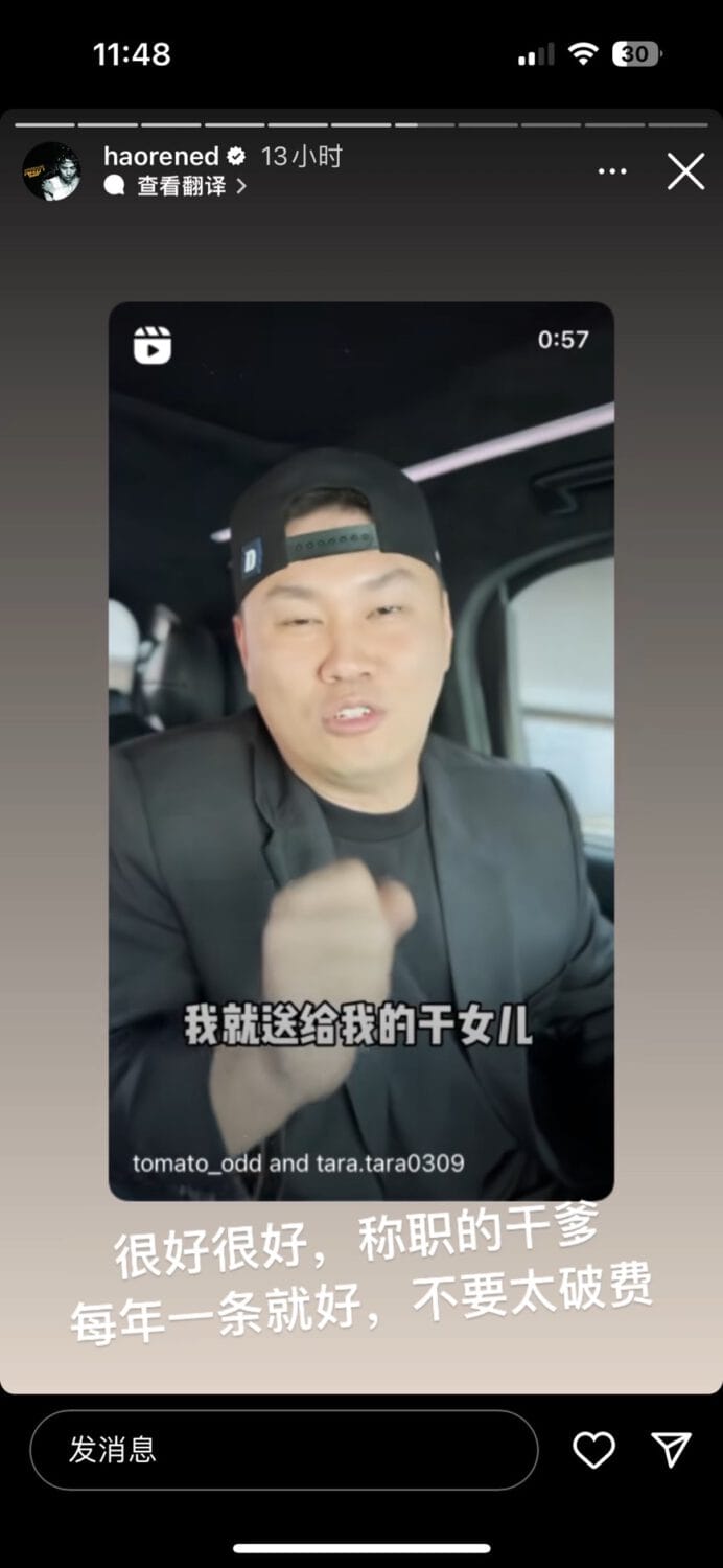 ▼而干女儿的亲爸则表示: