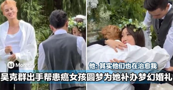 歌手吴克群暖心出手,帮一名患癌女子补办梦幻婚礼的消息,感动了不少网友。26 岁的邹大福来自中国贵州,因为胃癌晚期,一度以为自己再也没有机会穿上婚纱。没想到,吴克群得知她的故事后,主动出手圆梦。邹大福在网上分享时感叹说:「如果不是吴克群先生,我们暂时没有办婚礼的打算,是他弥补了我的遗憾」