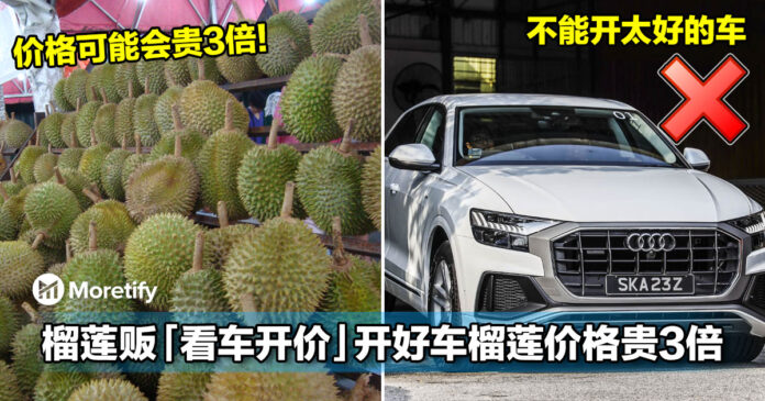 ▼如果你驾驶的车比较「普通」,这些榴莲小贩可能会以合理范围内的价格卖给你。但如果你驾驶的是豪华汽车,那么价格很可能比一般人的价格贵 2 至 3 倍!
