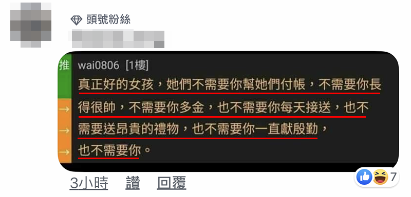 ▼话说回来,其实现在女生的观念也不是不能接受 AA 制,大家都知道现在钱辛苦赚,但其实女友生气的真正原因楼主你懂没有?网友也点出 2 个帖子中的盲点: