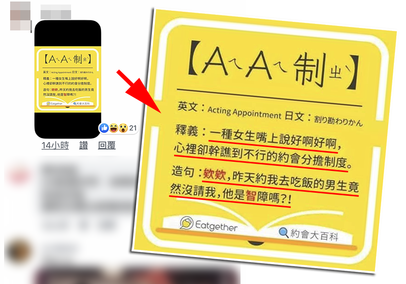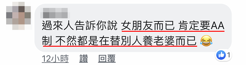 ▼我知道这年头流行「AA 制」男女生各付各的,但楼主你难道不懂「AA 制」背后的真正意思吗?