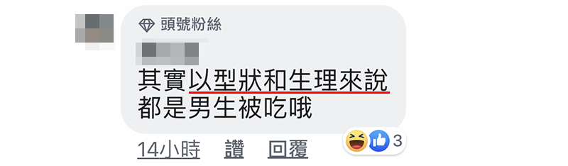 ▼(不过,这句话被另一名网友小小吐槽了一下,其实以「外观」来看,是女生「吃」男生唷~)