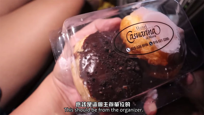 ▼伟鸿买的是 RM42 的套餐 C,里面包含一份 nachos(玉米片)、一份 hotdog、一份 nugget、两个甜甜圈、和两个罐装汽水。