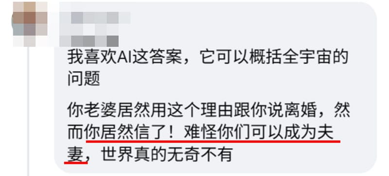 他对老婆的做法百思不解!难道一段婚姻到底能不能继续,真的需要靠 AI 的算命结果来决定吗?还是说,更重要的是他们一起生活的点点滴滴?
