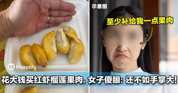 一名新加坡女子花了 70 元(约 RM230)购买了五粒红虾榴梿,却对其中一粒感到十分失望,认为不值这个价格。