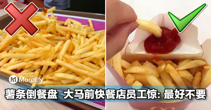 ▼大马人尤其喜欢把薯条倒出来餐盘,大家一起开心 share 着吃,但原来这个行为,看在大马快餐店员工的眼里,是一件非常 geli 的事情呀!
