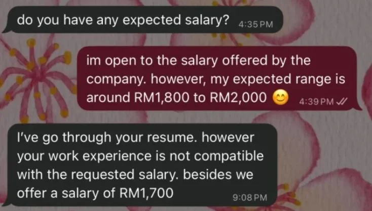 一名刚毕业的大学生原本因获得面试机会而感到振奋,却在得知沙巴亚庇一家公司仅愿意提供 RM1700薪水后大感失望。公司理由是她的薪资要求与其工作经验不相符。