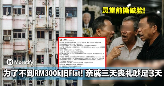 亲人离世本该是共同缅怀的时刻。可悲的是,对某些人来说,遗产比亲情更迫切。一名大马网友向「八卦部门」Facebook 专页匿名投稿,揭露大伯和小叔为了不到 RM300k 的旧 flat,在灵堂前撕破脸,三天丧礼吵了三天!