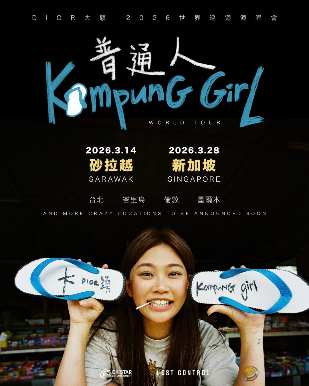 近日,她再次晒出《Kampung Girl 普通人》巡演海报。首先,预告将于 2026 年 3 月 14 日举办砂拉越站,随后还将踏上国际舞台,前往新加坡、台北、巴厘岛、伦敦和墨尔本等城市开唱,实现了曾经对歌迷许下「把歌唱到世界各地」的承诺,令粉丝们又惊又喜!