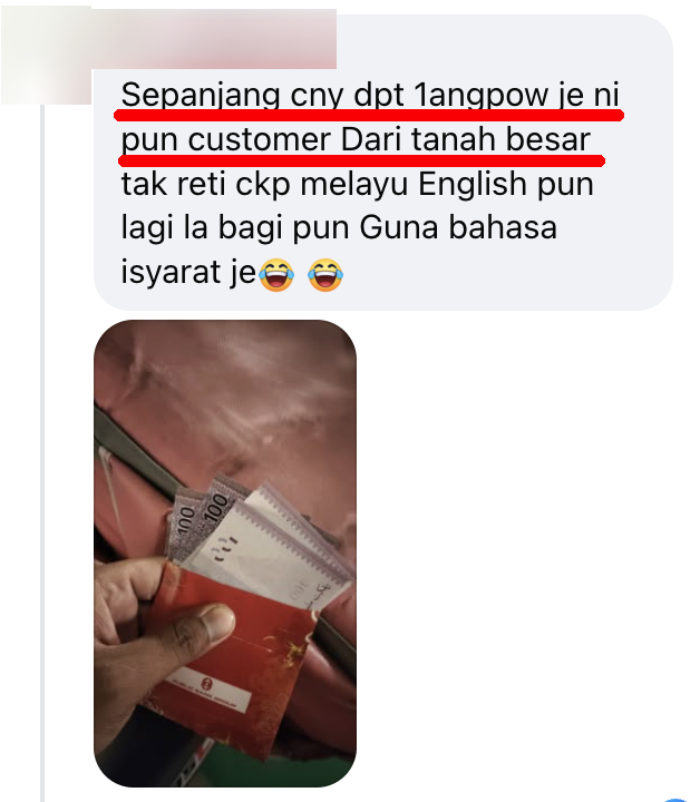 整个农历新年只拿到一个红包,而且还是一个来自中国大陆的顾客给的
