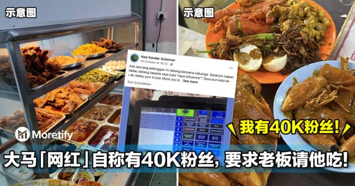 近日,一名自称拥有 40K TikTok 粉丝的网红在槟城乔治市一家著名的扁担饭(Nasi Kandar)餐馆用餐时,以「我是网红」为由,要求店家老板免费招待他一家人,但遭到拒绝,引发网民热议。