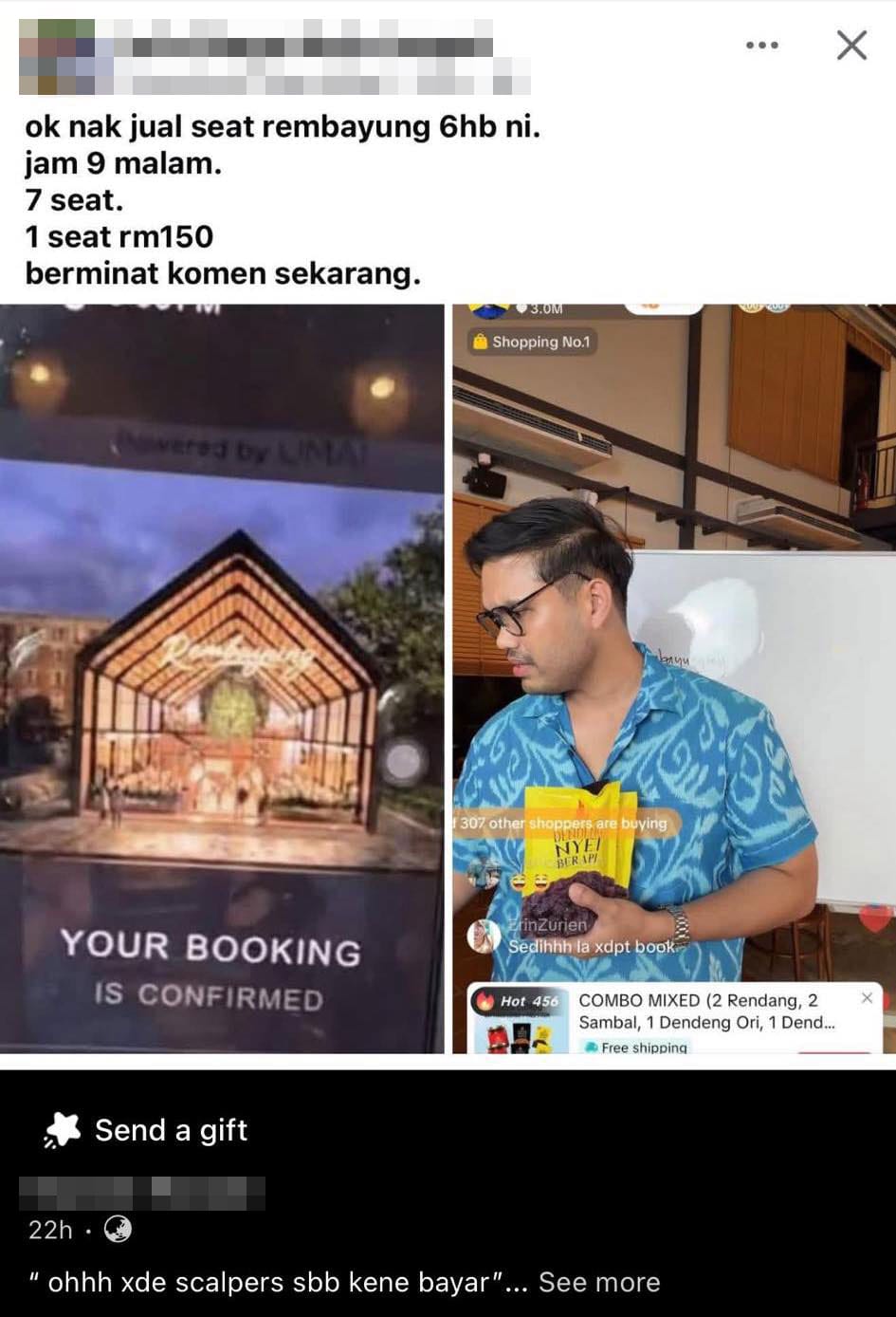 根据网友转发的《Info Warga Hulu Langat》 Facebook 贴文,一名网友表示自己预订了该厅的周二(6 日)晚上 9 点的 7 个座位,每个座位售 RM150,呼吁兴趣者到贴文下留言。