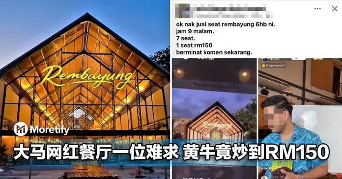 餐厅开业后人气爆棚,吸引大批食客慕名而来,座位一位难求。黄牛党也趁机出来炒价,一个座位索价高达 RM150。