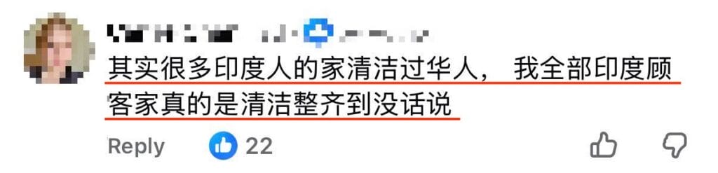她说:「是华人就一定干净?是印度人就一定脏?不要种族偏见,但也不要被偏见影响判断!」