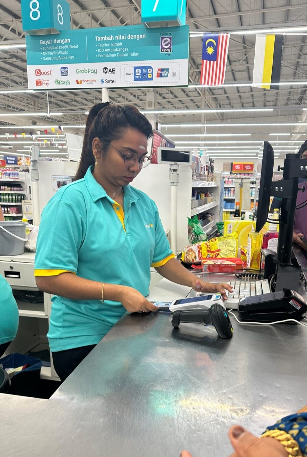 今天虽然很多人来做申请(Madani 补贴的 Claim),她依然能够微笑着,还能跟顾客聊天,像她这样的人真的很适合做这份工作。