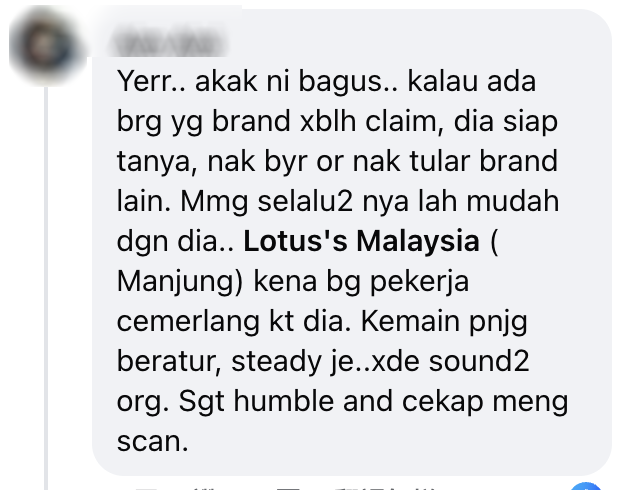 此帖文一出,女收银员因态度亲切而走红,不少网民标记 Lotus’s Malaysia 也因此引起了公司的注意!