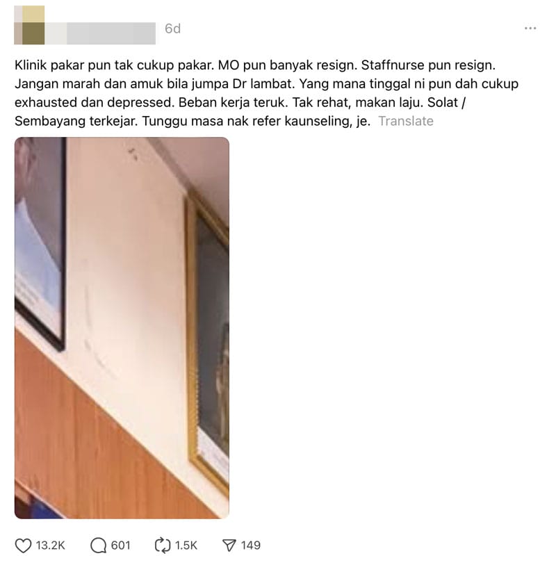 根据星洲日报报道,这名医生在 Threads 发文,透露专科诊所人手短缺的真实惨况。他说,现在专科诊所不仅医生不足,许多医务官「MO」也陆续辞职,护士也一直在流失。