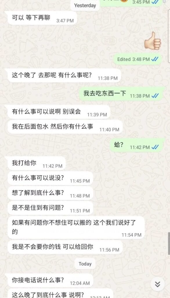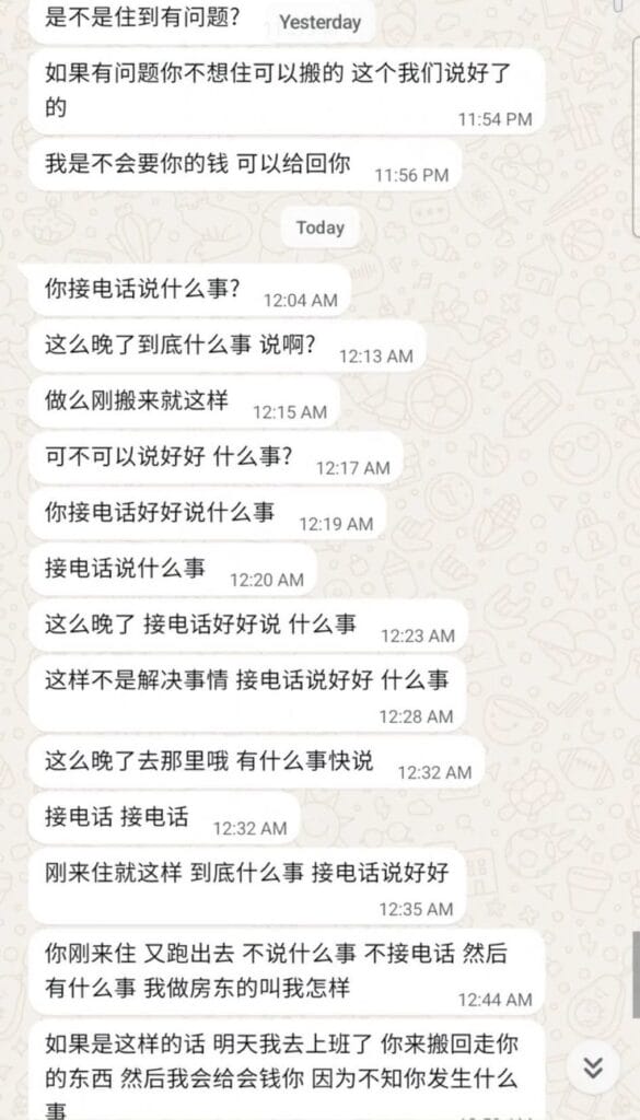 事发后,屋主狂发信息给她,试图解释,但她感到更加不安,于是决定当晚立刻搬走。
