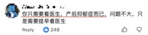 该帖发布后,不少网友留言表示理解,认为产后情绪与家庭角色变化可能带来很大压力,也有人提醒她有必要去看一看心理医生。