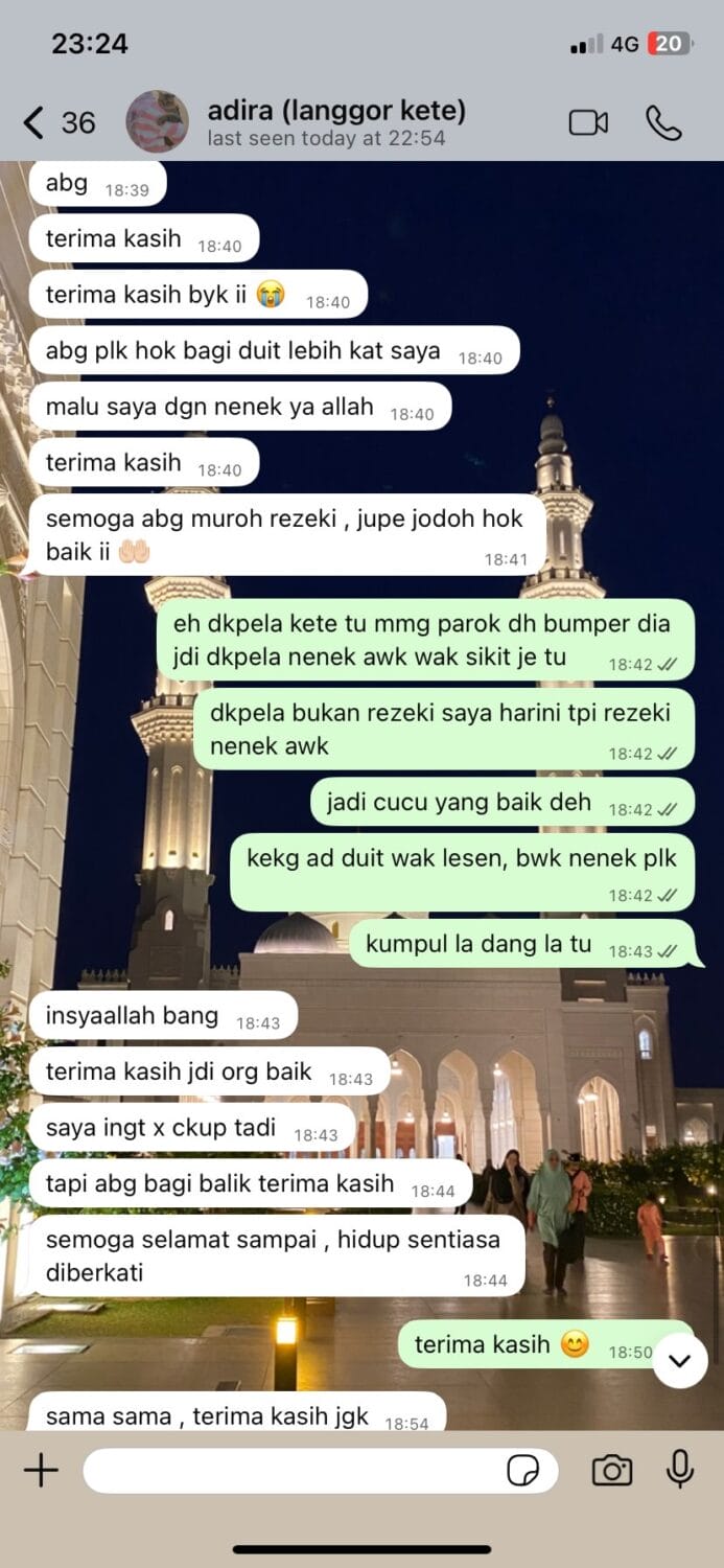 他读完纸条后才知道事情的来龙去脉。随后,他也从现场一名路人口中得知,当时确实是一名驾着 Perodua Kelisa 的老妇和她的孙女不小心撞上了他的车。