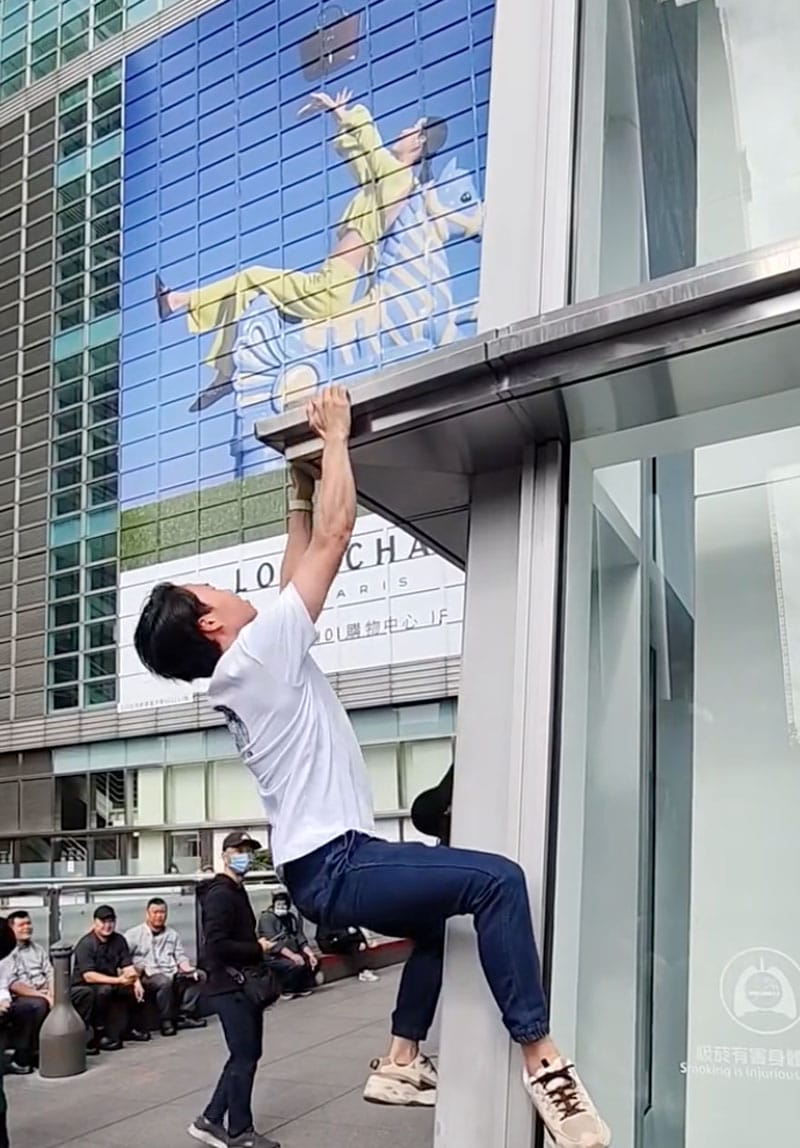 不过,现场也出现民众模仿攀爬的情况。有民众试图抓住窗框、脚踩外墙向上蹬踏,但仅停留数秒便跳下!甚至有孩童学着蜘蛛人般的动作尝试攀爬。对此,台北 101 工作人员多次上前劝阻,强调外墙结构并不适合一般人攀爬,且极易发生危险。