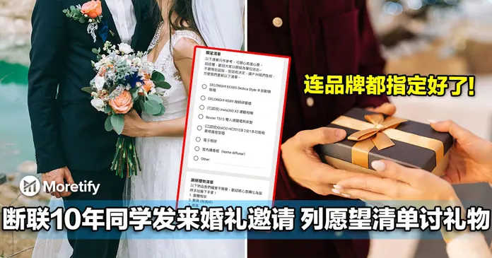香港一名网友最近收到一名断联 10 年的中学同学的婚礼邀请,对方不仅附上礼物「愿望清单」,更要求宾客们购买指定品牌和型号的礼物,引发网友热议。