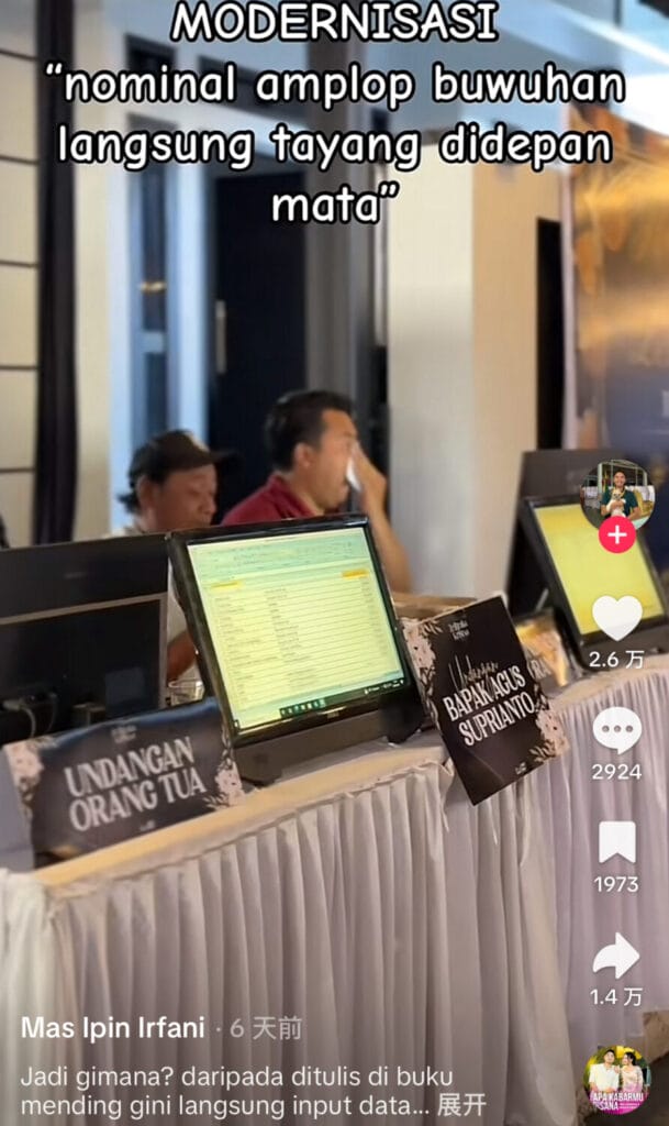 近期,在印尼 Kota Batu 的一场婚礼近日引发热议,原因竟是新人当众展示宾客的 salam kaut (红包金额)!