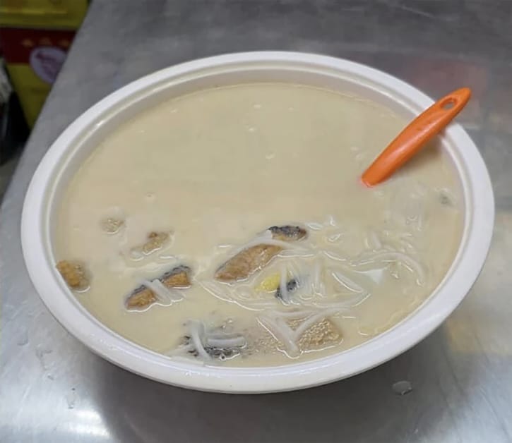 更让人感慨的是,之前疫情导致生意不好,尽管成本不断上涨,他的摊位近 10 年来都没有涨价。一碗鱼头米粉只卖 RM25,虾酱鸡 RM28.50,三捞河粉 RM22。他说,不希望让食客吃得太贵。