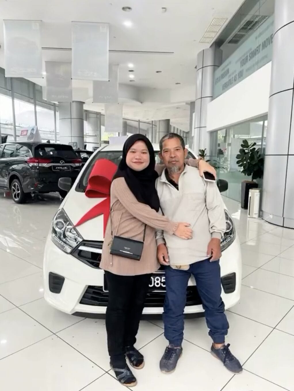 该汽车销售员表示,虽然女子买的只是 Perodua Axia E 轿车,但她的孝心值得大家表扬。