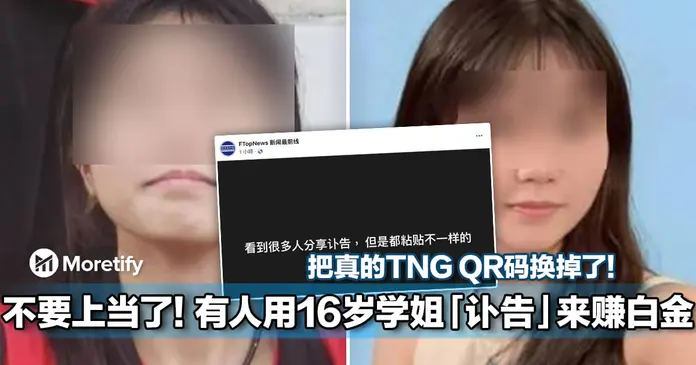 在 5 小时前,16 岁学姐妈妈在网上公告小女儿的讣告,以及 TNG QR 码让亲朋好友方便给白金。