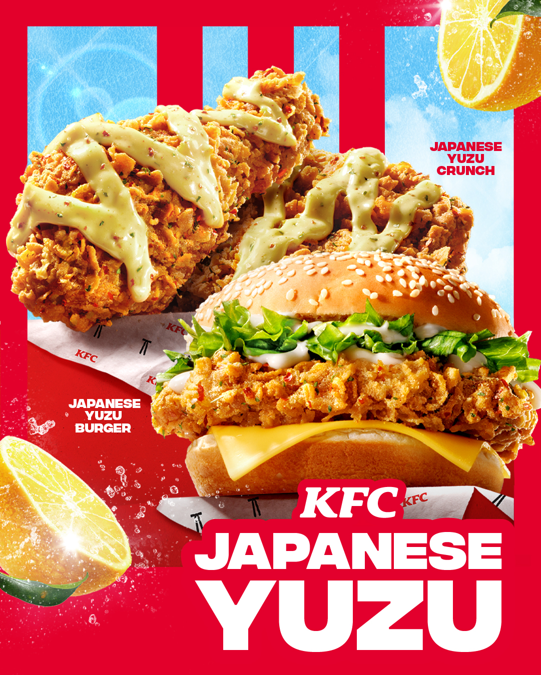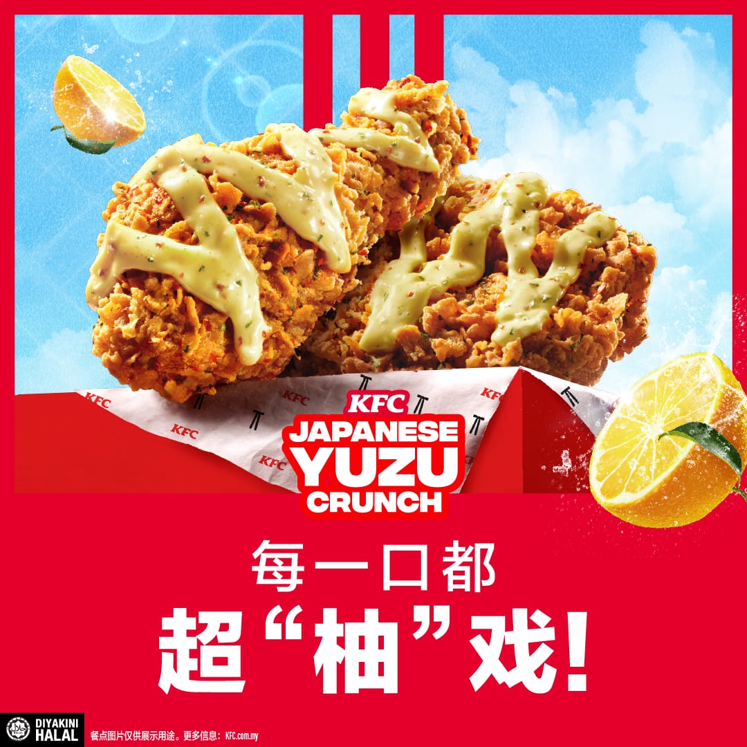 KFC 这次带来了全新的日式柚子系列(Japanese Yuzu)新滋味!清新酸爽、微麻刺激、浓郁香气,让你吃一口就元气满满,给你的味蕾来一场说吃就吃的日式小旅行~
