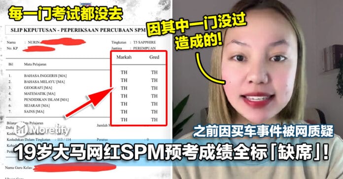 事情还未平息,如今再度传出风波!最近,她的 SPM 成绩单在网络疯传,所有科目成绩栏上竟都标着 「TH」(缺席)。